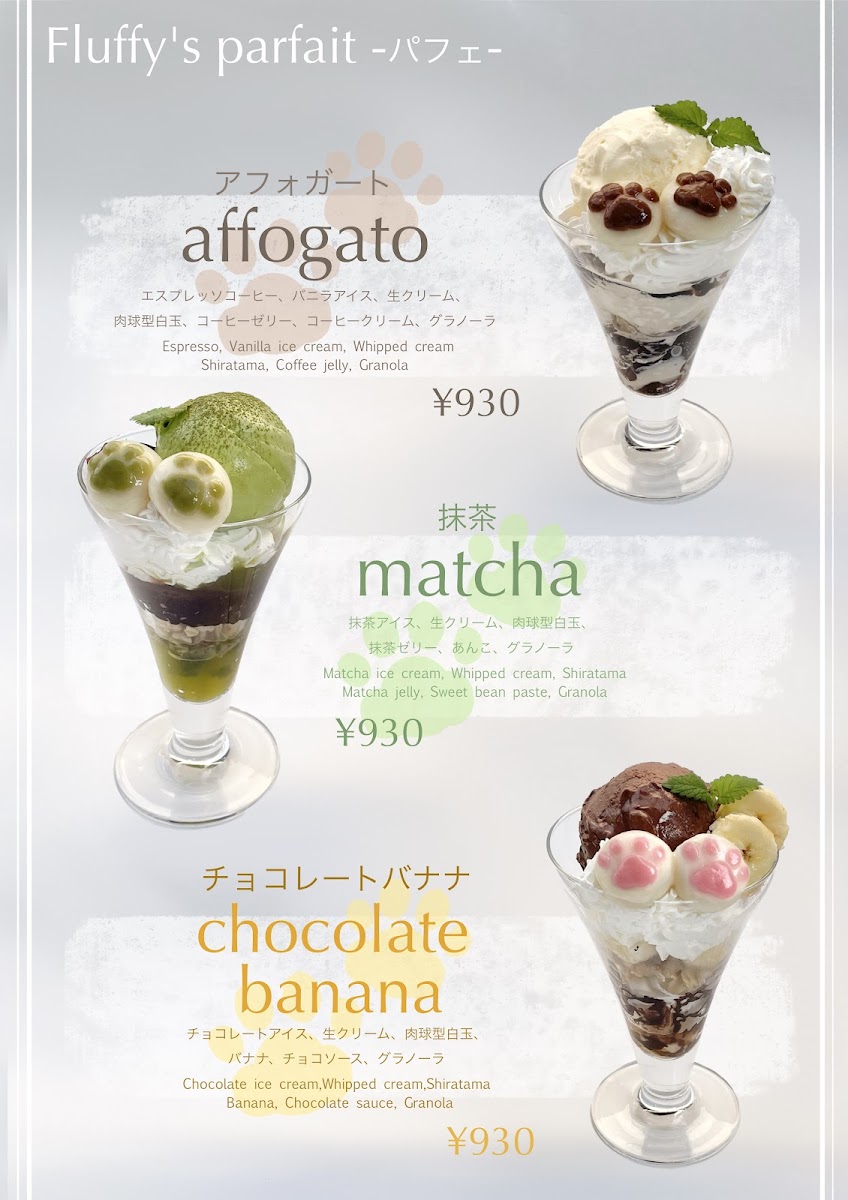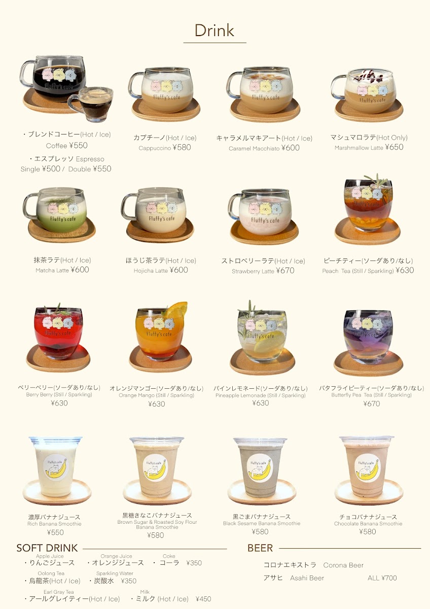 Speaking of refreshments, the menu at Fluffy's Cafe is sure to captivate your taste buds. Although specific menus weren't listed, previous customers rave about the café’s fresh bagels, including adorable cat face-shaped ones, which add a touch of whimsy to your dining experience. For beverage enthusiasts, there's a selection of well-prepared drinks, including highly praised matcha lattes that offer a creamy, rich flavor that pairs beautifully with anything from their menu. Each sip feels like a warm hug, and it’s hard not to savor each moment.